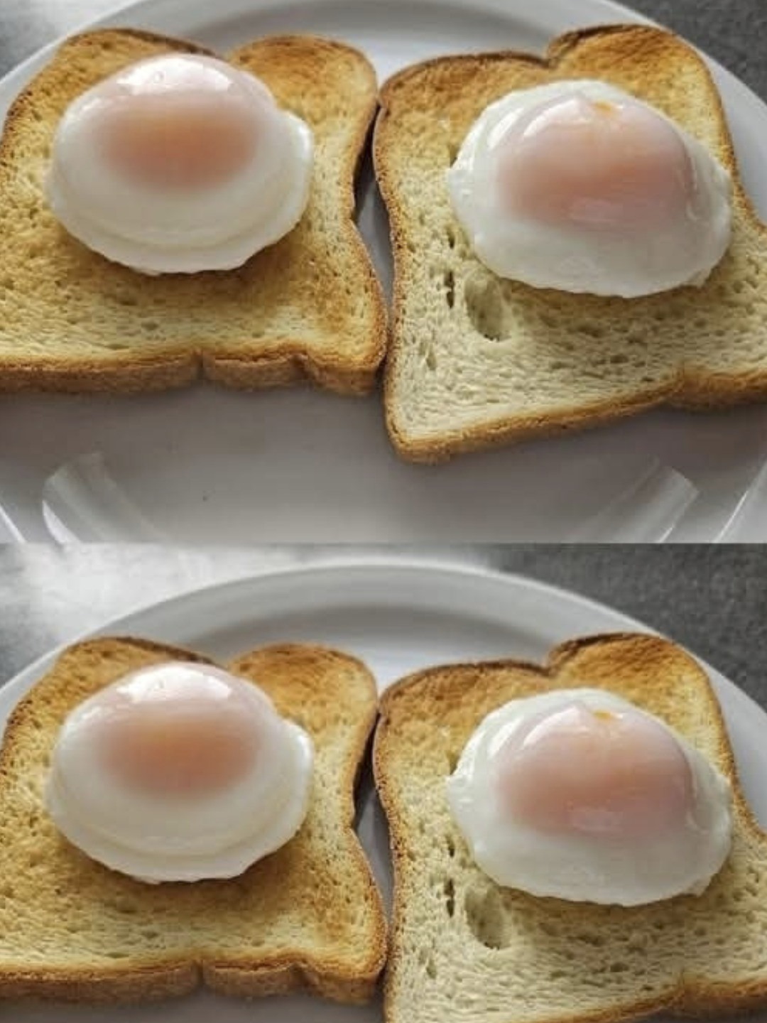 Traditional poaching relies heavily on vinegar and vigorous swirling. While effective, vinegar can alter flavor and swirling can create uneven shapes. This recipe replaces vinegar with salted water and controlled heat, allowing the egg whites to naturally coagulate without harsh acidity. The result is a cleaner taste and a more naturally rounded egg.