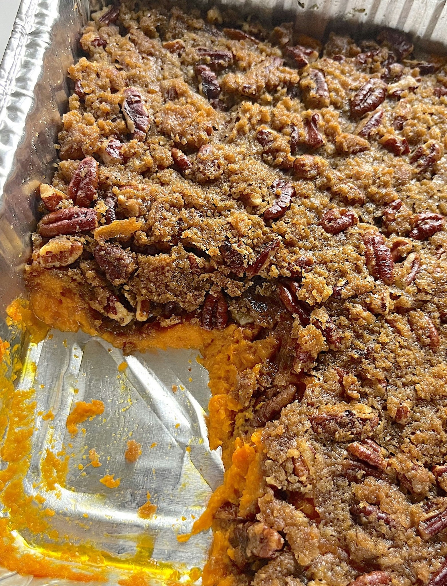 If you want a half-marshmallow, half-crumble topping (a Southern favorite), simply cover one side of the dish with pecan crumble and reserve the other half for marshmallows to add later.