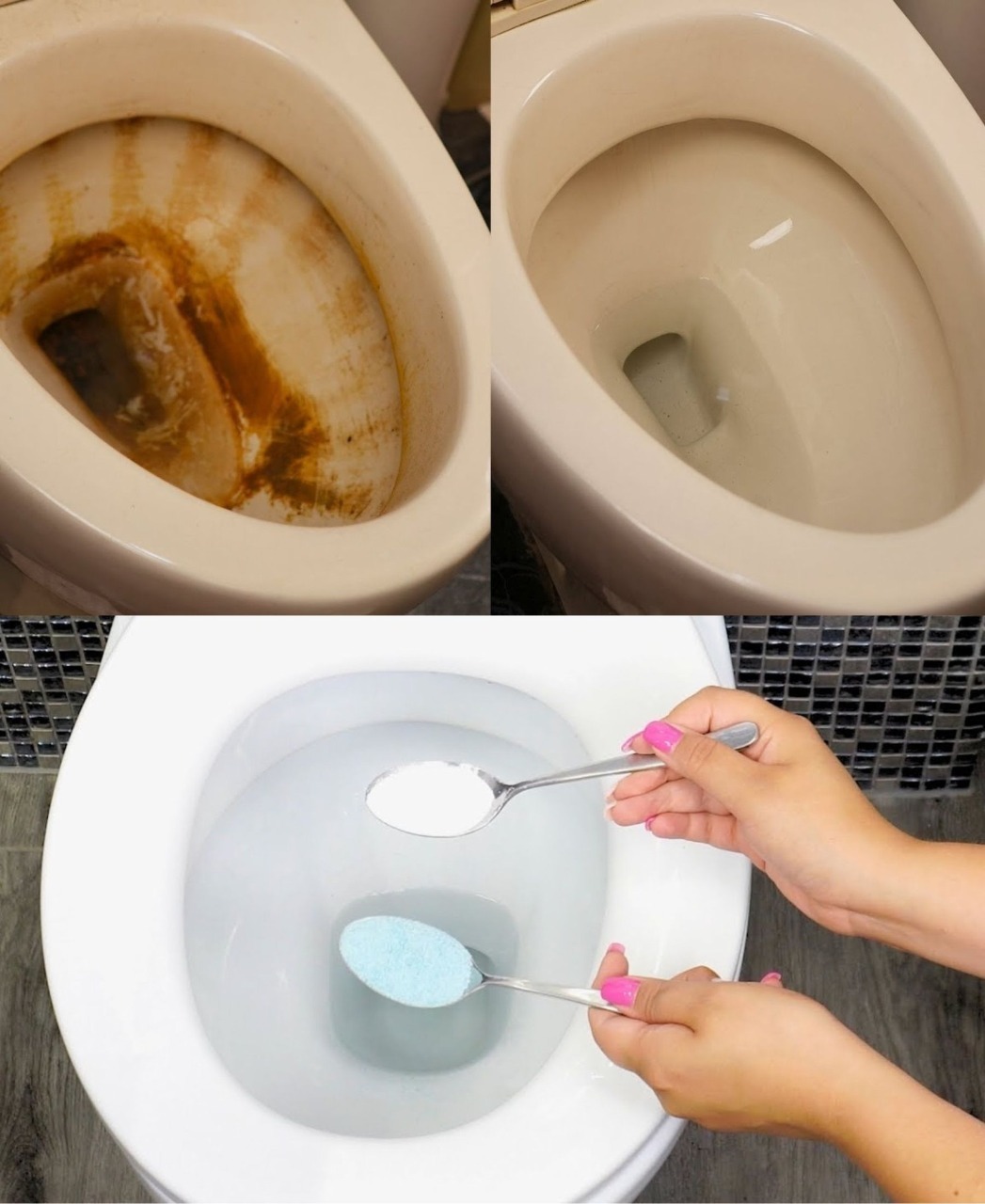 If vinegar smell bothers you, citric acid (found in lemons) works similarly. Dissolve 2–3 tablespoons of citric acid powder in hot water and pour it into the bowl. Let sit overnight.